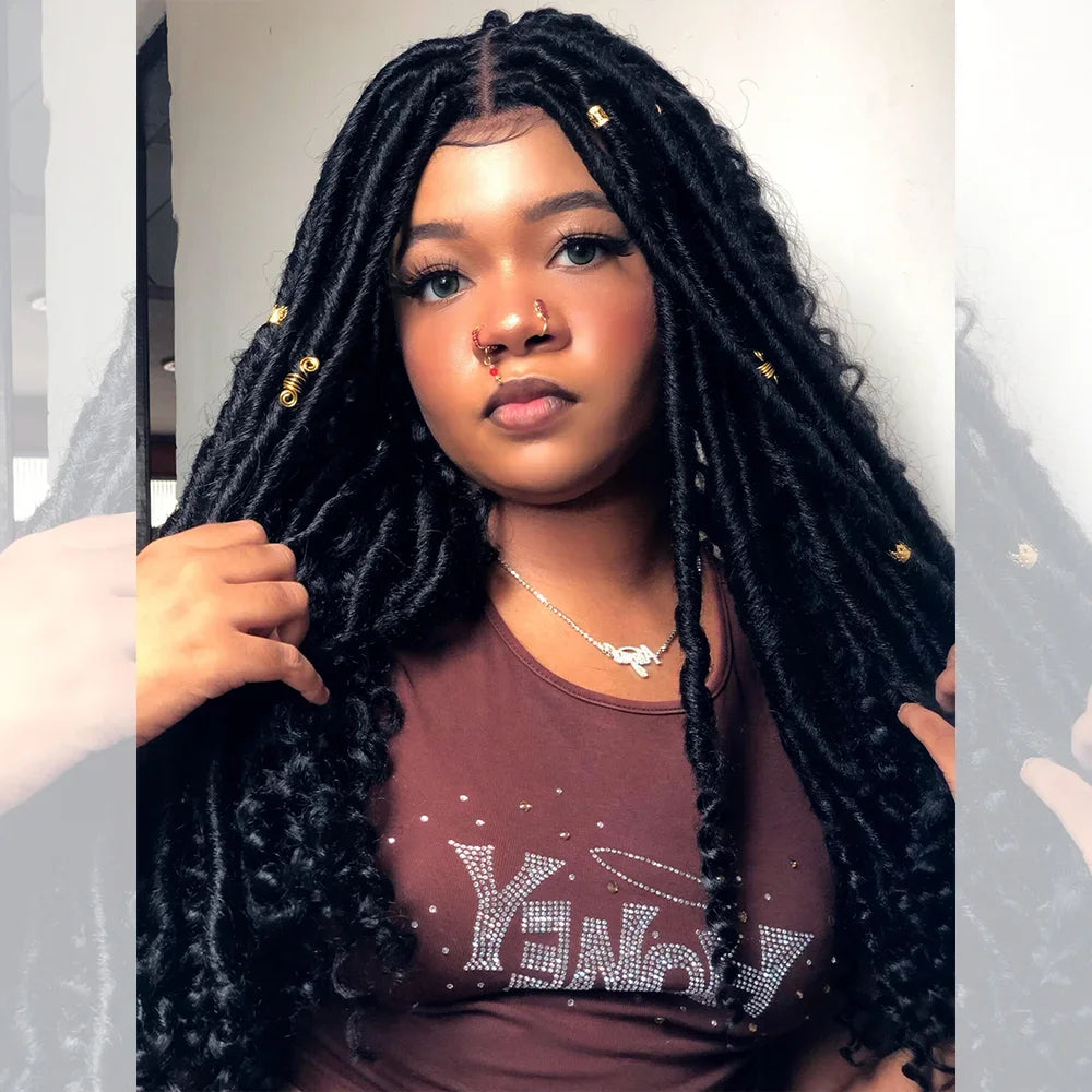Enstah 26 Inches 4x4 Faux Goddess Locs with Curls Braids Lace Closure Wigs 200% Density-100% Handmade - 4x4 Lace Closure / 26 Inches / 200%