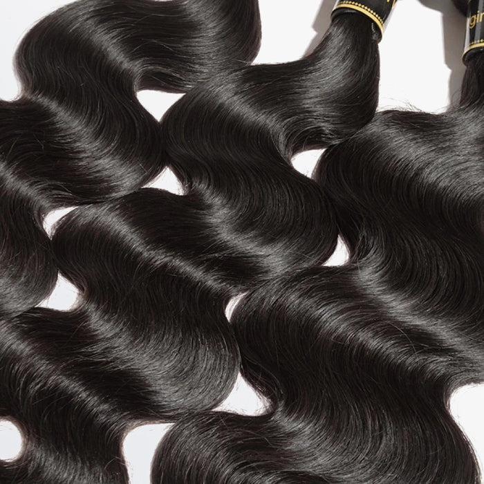 Enstah 10''/12''/14'' 3 Bundles Body Wave Virgin Hair 300g With 12'' 4*4 Body Wave Free Part Closure - 10"/12"/14" / #1B Natural Black / Body Wavy