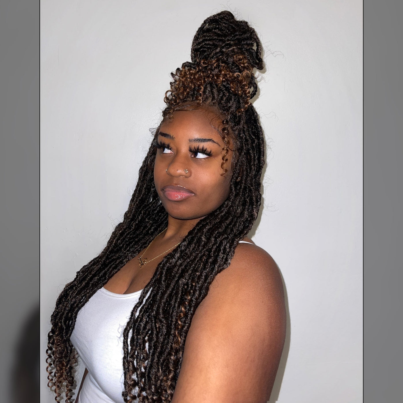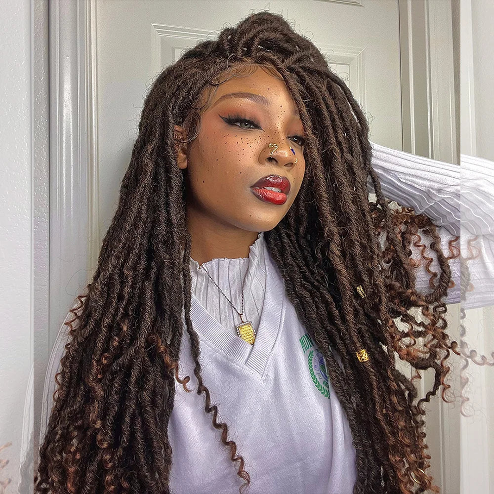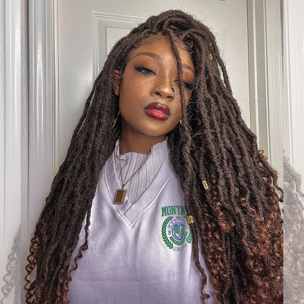 Enstah 26 Inches 4x4 Deep Curls Ends Boho Goddess Locs Lace Closure Wigs 200% Density-100% Handmade - 4x4 Lace Closure / 26 Inches / 200%